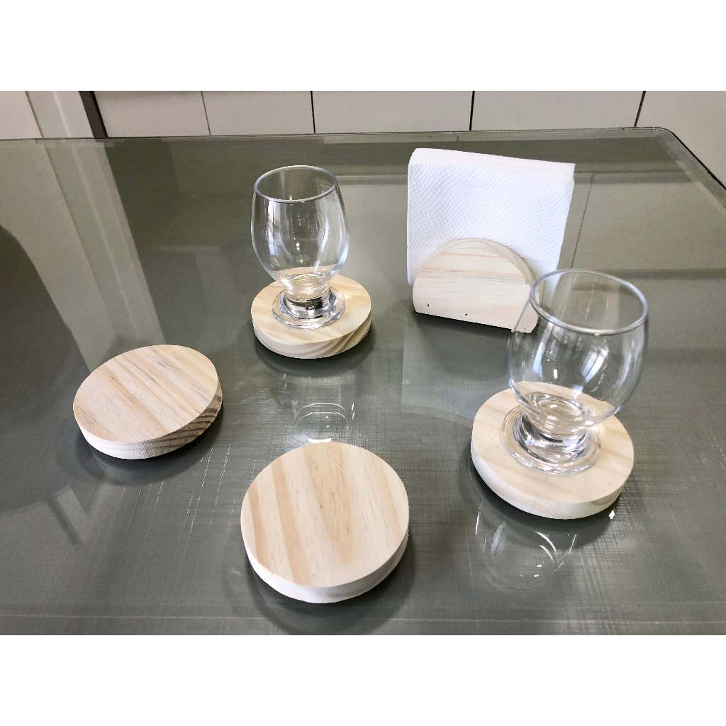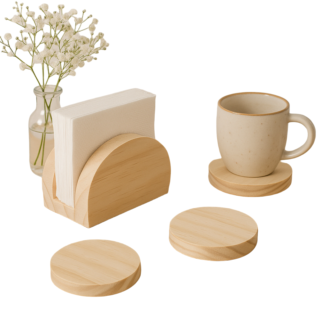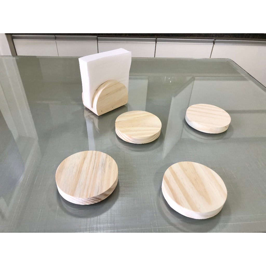 Kit Rústico em Madeira Pinus – Porta Guardanapos + 4 Apoios de Copo