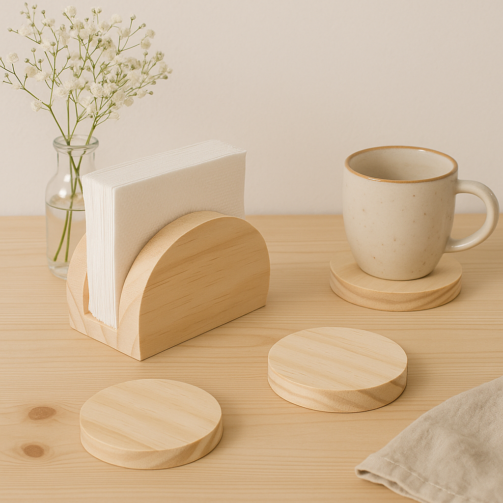 Transforme detalhes simples em grandes momentos à mesa com esse kit encantador feito em madeira natural. Perfeito para quem aprecia beleza, funcionalidade e aconchego no dia a dia.